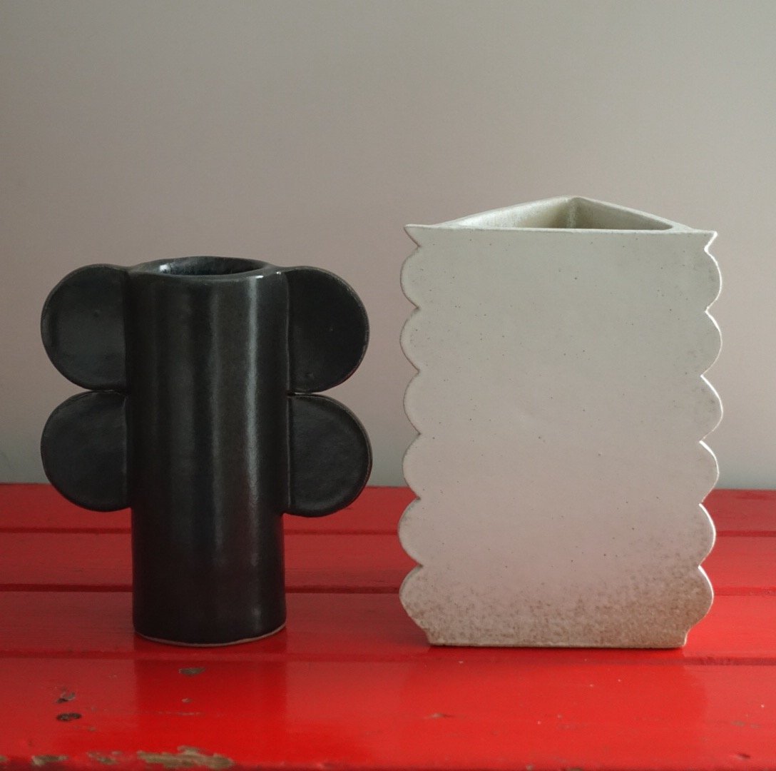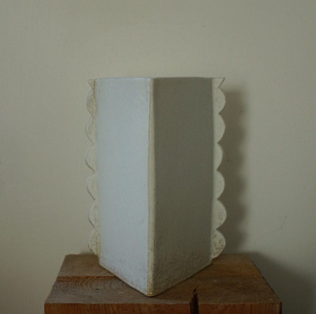 Hand built white vase, matte glaze on the outside and gloss inside.